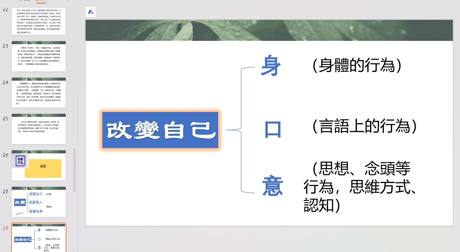 20251026日,香港少儿读书会·成人组举办了本月最后一场读书会,围绕《让心属于你自己》中改变,从心开始的一章, 深入探讨了改变的主题。本次讨论聚焦于改变的三个层次:改变自己、改变他人以及改变世界,并强调改变的核心在于从自身做起。以下为书友们的精彩分享与感悟。
