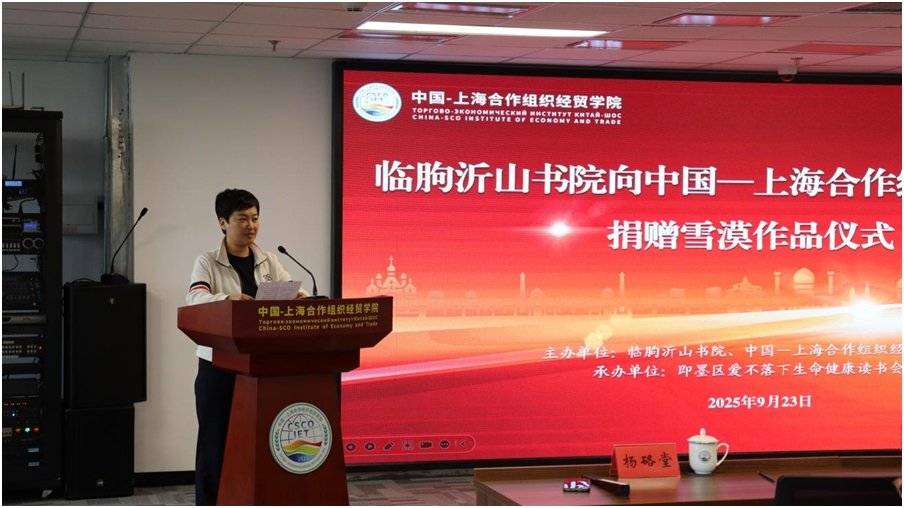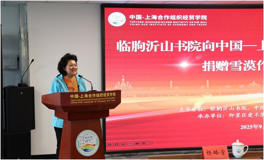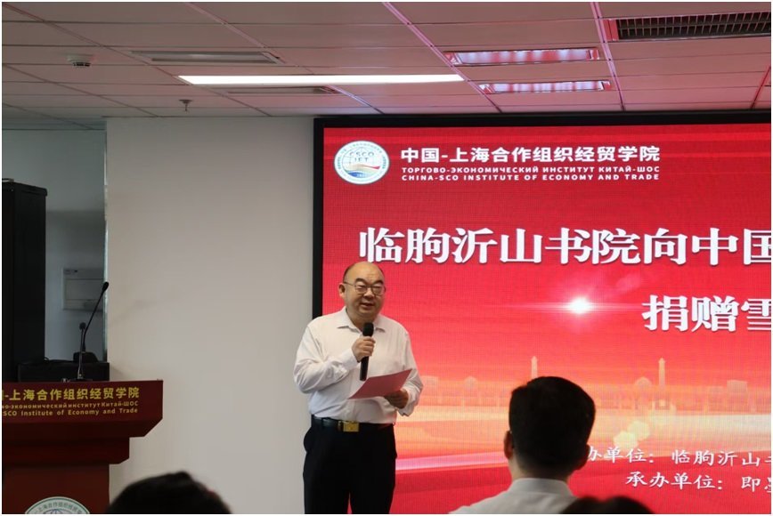 在建国76周年“国庆节”即将来临之际,我们齐聚上合组织经贸学院,共同见证一场满载文化温度与精神力量的文献捐赠仪式。首先,我谨代表上合组织经贸学院全体师生,向本次捐赠活动的发起方——沂山书院,致以最诚挚的感谢!向精心承办此次活动的即墨区爱不落下生命健康读书会,以及给予大力支持的社会各界爱心人士,致以崇高的敬意!
