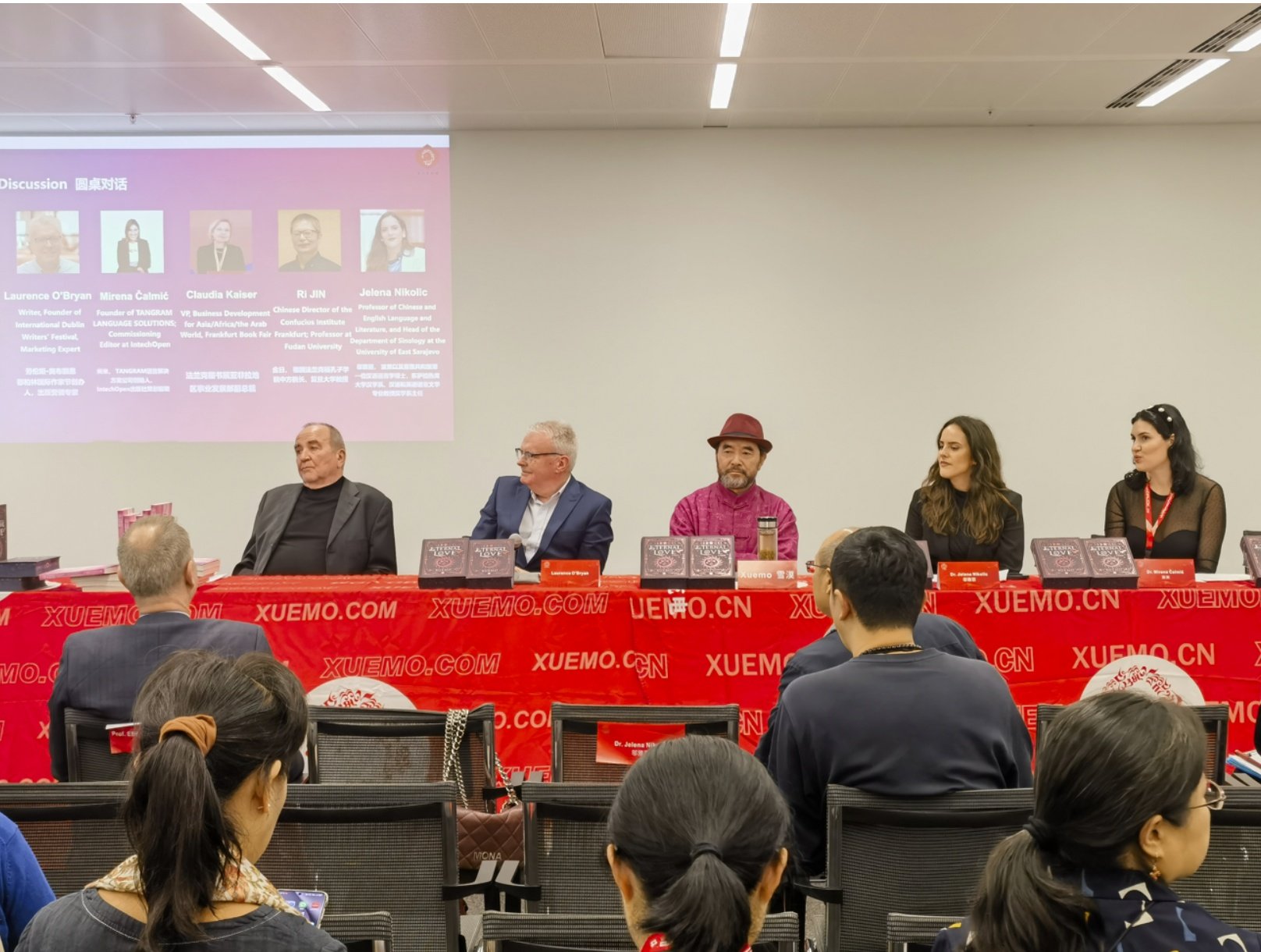 论坛现场,哈佛大学赫钦斯中心研究员托比·莱文、波恩大学汉学家培高德、卑尔根大学赵守辉教授、土耳其艺术家卡杰教授、龙屋出版社社长傅愉、Clavis出版社创始人菲利普·韦尔克等嘉宾齐聚,共话“在虚无中创造意义”的文学担当。