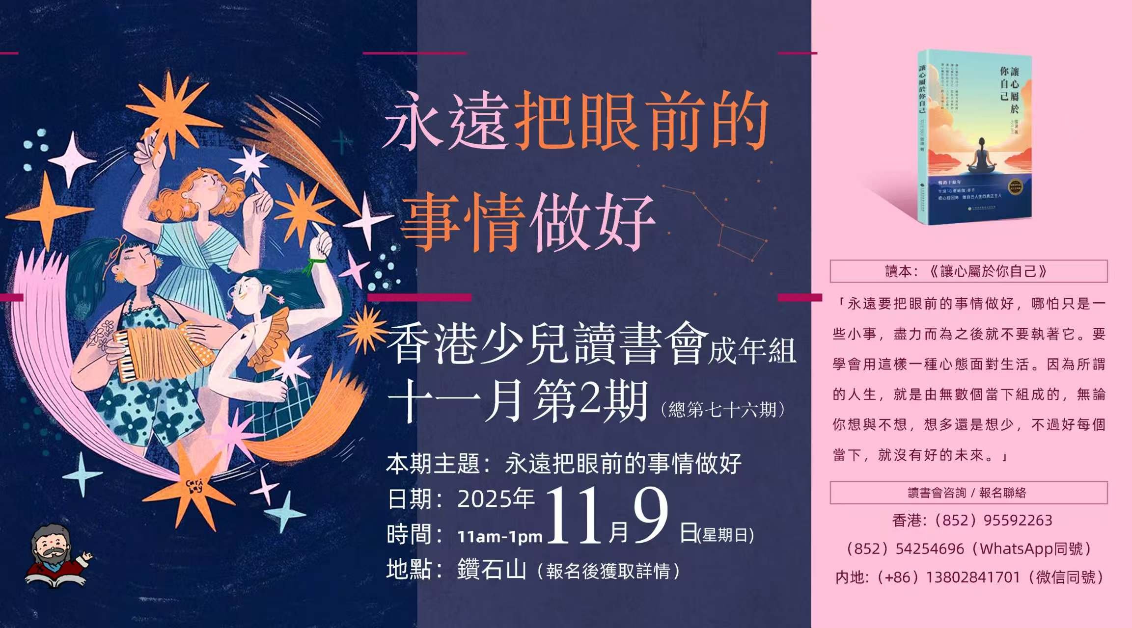 本次读书会,让书友们深刻体会到:快乐源于生活,源于内心,亦源于每一个当下的念头。正如《特别清凉》中所言:“人一生里最重要的,是快乐与明白。”本场读书会虽已结束,但快乐的种子,已悄然种在每个人心中。是为读书会后记。(香港少儿读书会·成人组)