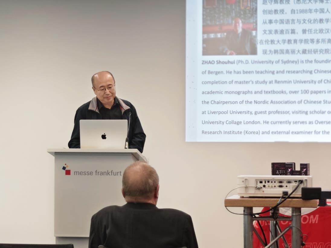 作为一名在挪威的中文教师,赵守辉先生在演讲中探讨了2023年诺贝尔文学奖得主、挪威作家约恩•福瑟与以“大漠三部曲”闻名于世的中国作家雪漠之间跨文化的、哲学的共鸣。