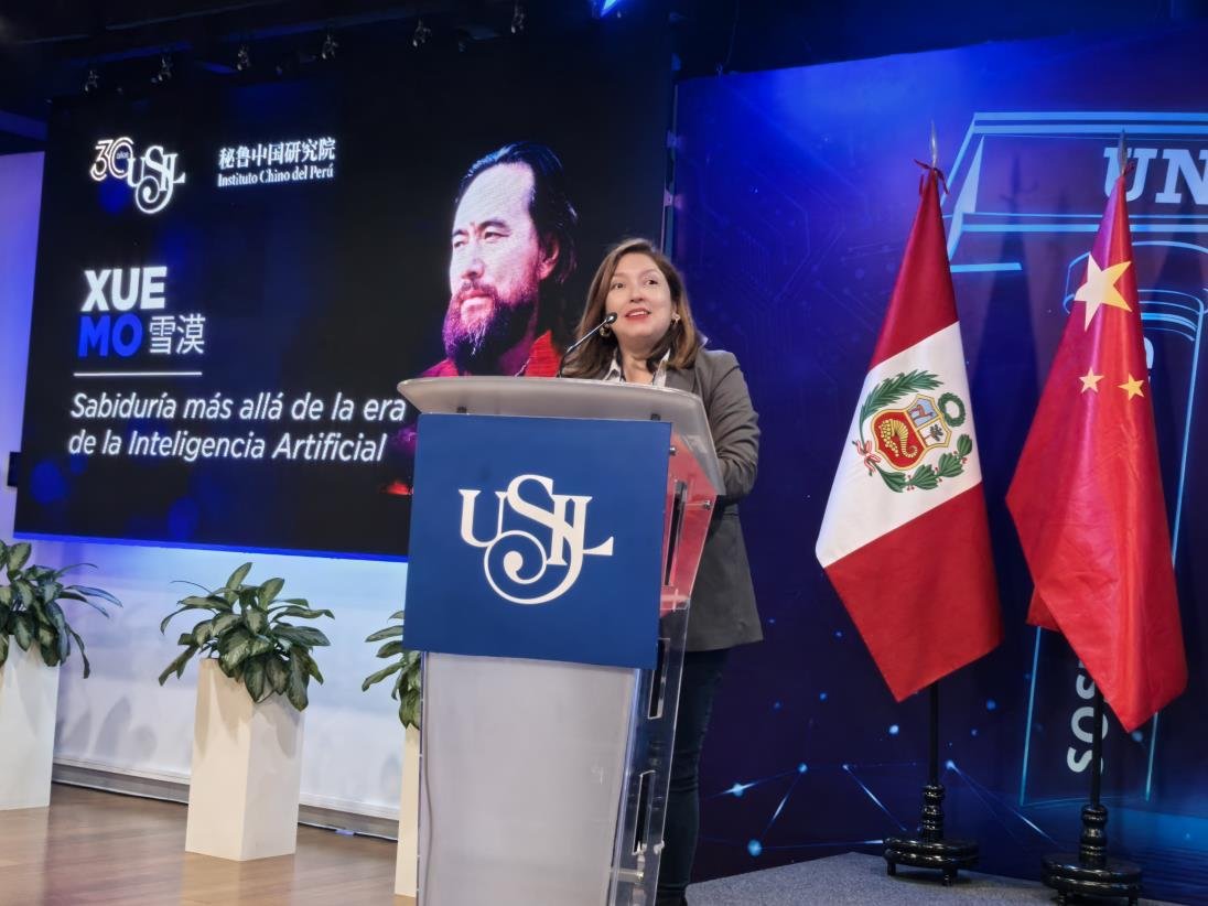 秘鲁中国研究院主任罗西奥•巴尔达拉戈女士在致辞中回顾了学院成立一周年的成果,强调了包括本次讲座在内的一系列文化活动对于加深秘鲁与中国之间兄弟情谊的重要性。她表示,雪漠先生的到来,重申了学院致力于推动文化与学术交流的坚定承诺。
