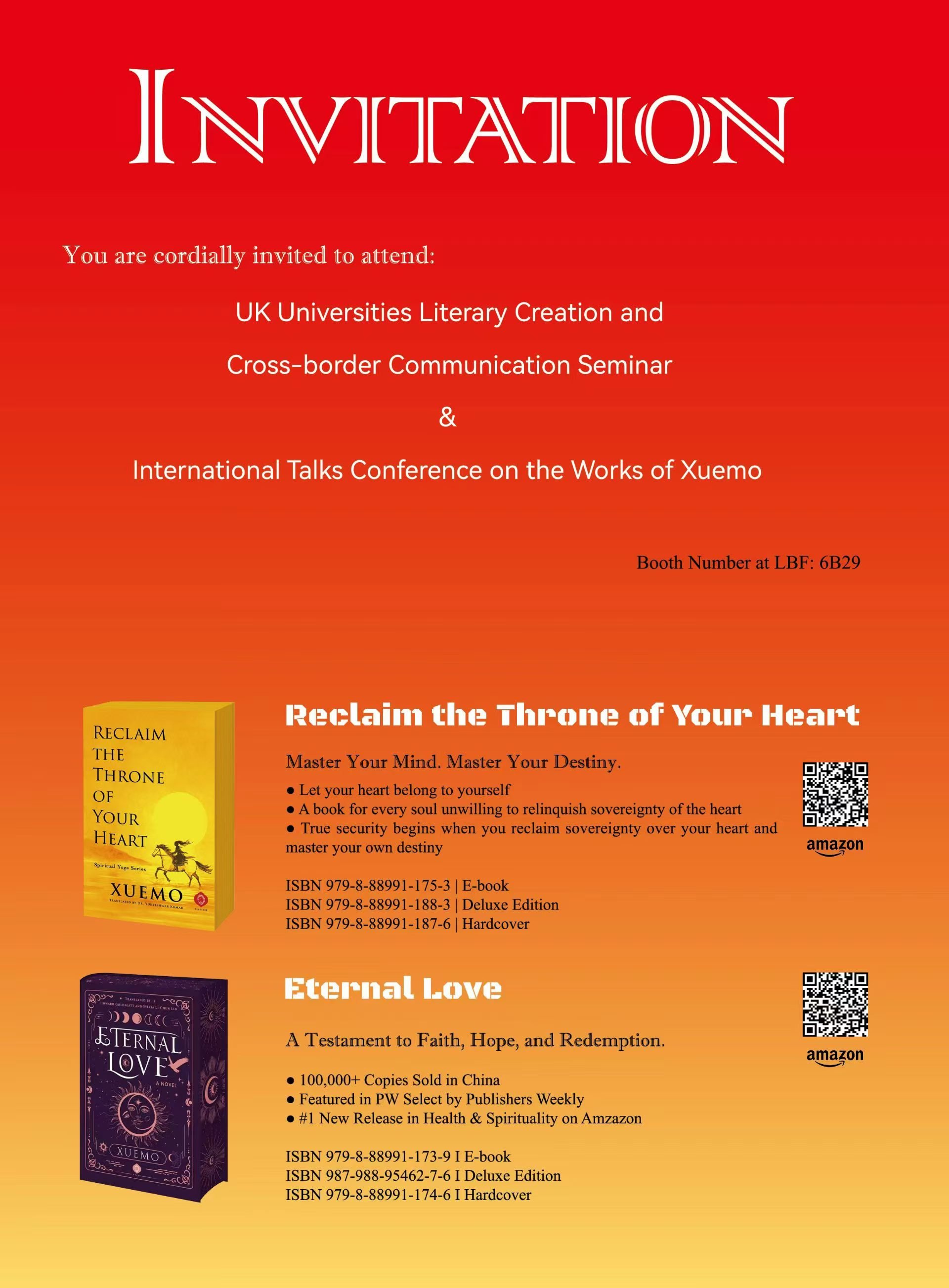 我们诚挚邀请您在伦敦书展期间莅临6B29展位,或在牛津文学节期间预约会面,与作家雪漠面对面交流,探讨国际版权、发行、学术合作等方面的无限可能。