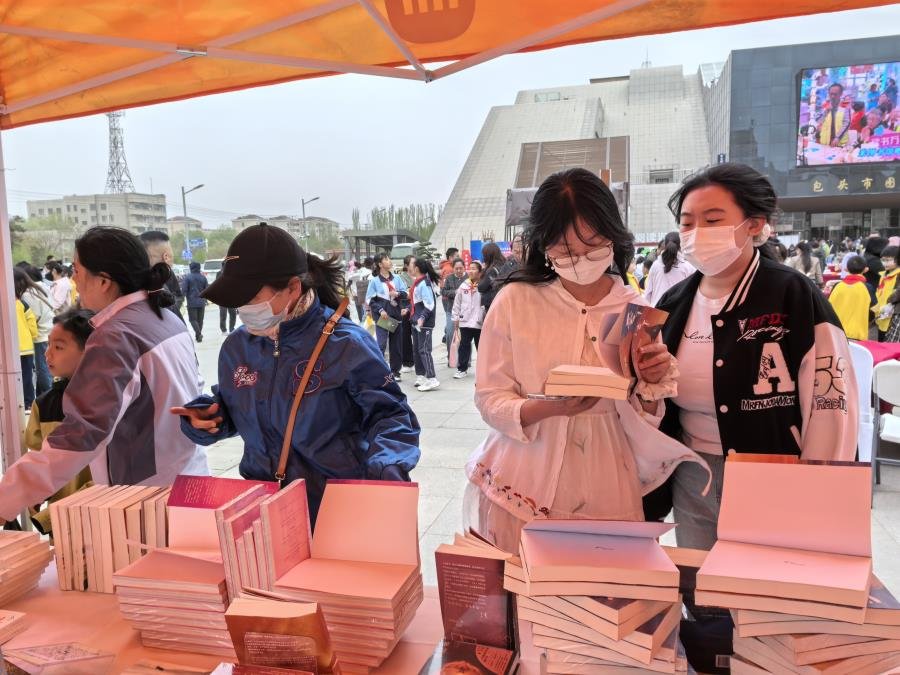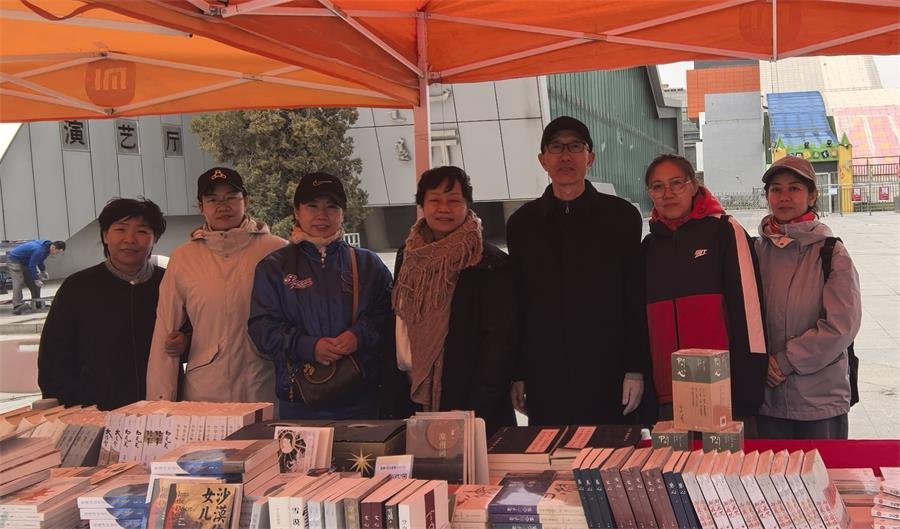活动现场,包头市图书馆安排了两个展位(共6米×1.2米),集中展出雪漠老师的作品。尽管上午寒风凛冽,志愿者们依然坚守岗位,满怀热诚地向过往读者细致耐心地推介作品,不少读者当场选购了图书。志愿者刘芳、张繁还同步开展现场直播,以线上方式扩大传播,让书香传递得更远。